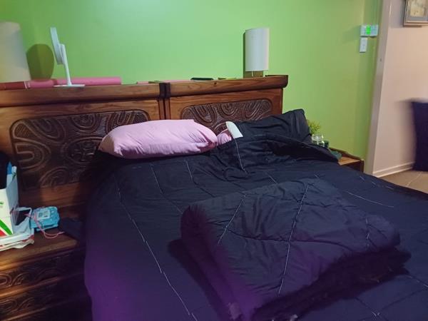 Both bedrooms are well-proportioned, with ample space for wardrobes and personal touches. The bathroom includes a full-size bath with overhead shower, toilet, and basin.