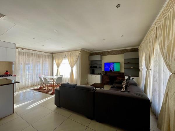 Featuring a neat and functional kitchen, a comfortable lounge, and a dining room perfect for family meals and entertaining. The bedrooms are generously sized and include built-in cupboards, while the main bedroom boasts an en-suite bathroom for added convenience. A second full bathroom serves the rest of the home.