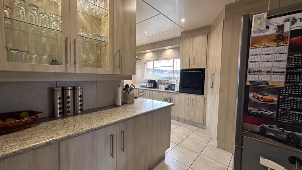 Outside, youll find a well-maintained garden with irrigation, supported by a borehole, as well as a heated pool. A double garage and a carport at the back add extra convenience and secure parking.