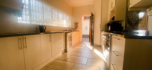 The self-contained flat provides added flexibility, offering its own private space ideal for rental opportunities, a home office, or independent living. Generating a rental income of R4500-00 already. Airy bedroom, pretty bathroom with shower and separate guest loo, well designed kitchen with gas hob and stove.