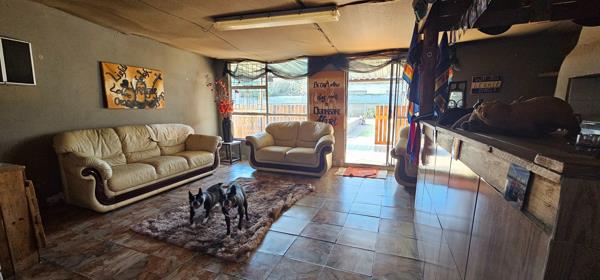Three-bedroom home with flatlet. Family home consists of a lounge with build-in bar for family gatherings and a sliding door leading to the pool area.