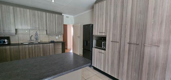 Three-bedroom townhouse in Sonlandpark. Townhouse with face brick and low maintenance, offers an open plan lounge and dining room and neatly fitted kitchen with ample cupboard space.