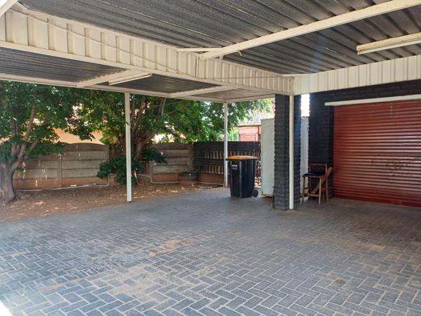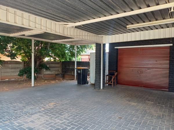 Outdoor amenities are a key highlight, with a generous backyard offering a large, treed garden that provides both privacy and a tranquil setting. A covered patio extends the living space outdoors, ideal for alfresco dining or simply enjoying the South African climate. Vehicle accommodation is well-catered for with a paved carport and a secure garage featuring a roller shutter door, offering two parking spaces and two garage spaces.
