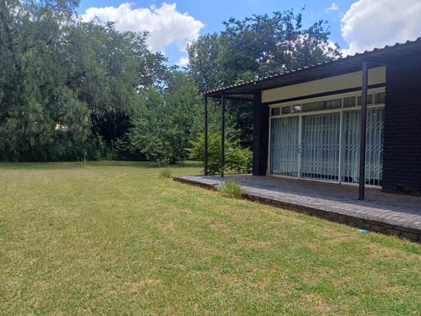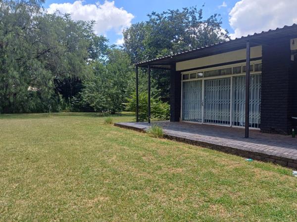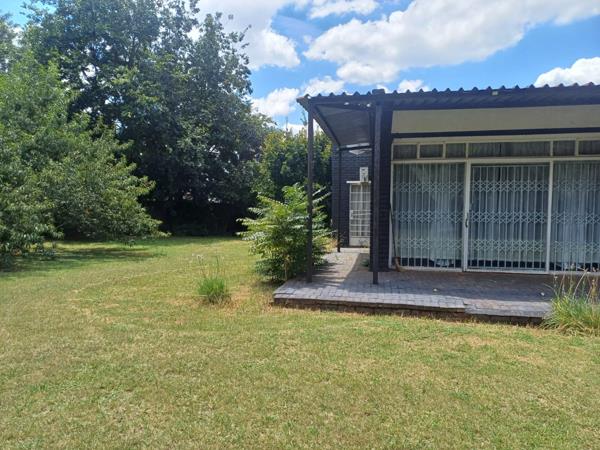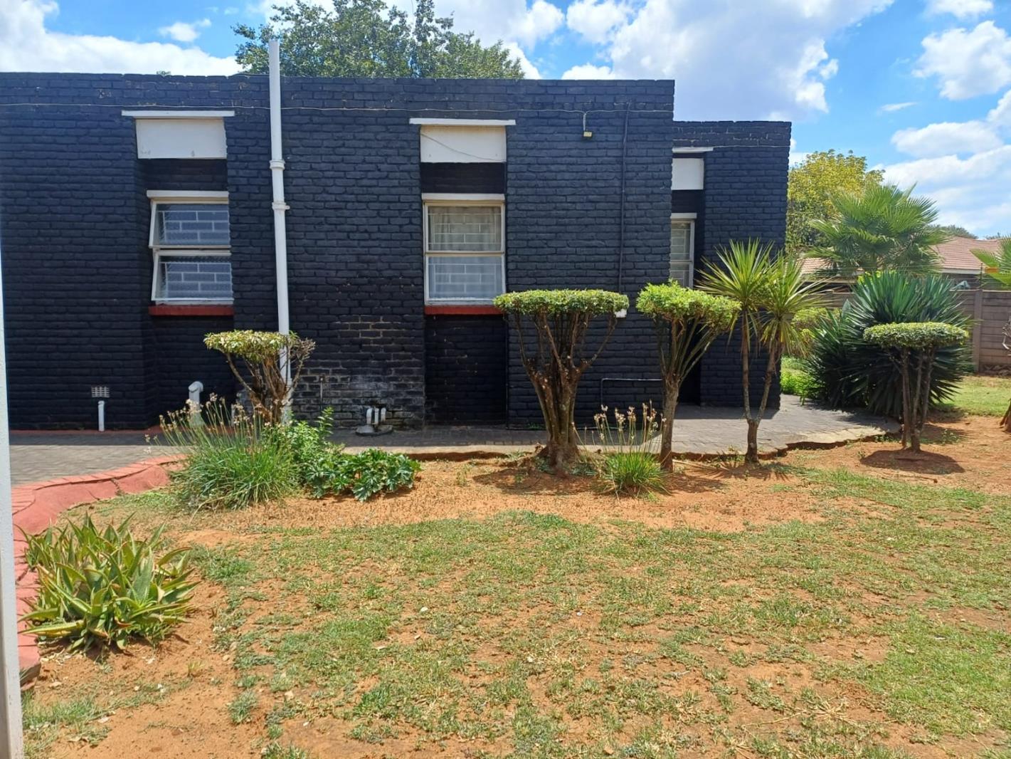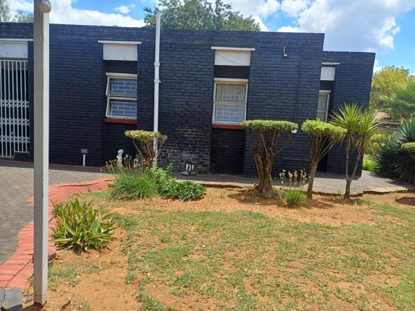 This residential property in Sonland Park, Vereeniging, offers a practical and secure living environment. The exterior features a distinctive dark-painted brick finish, complemented by security bars on windows and security gates, providing peace of mind. Paved pathways lead to the entrance, and the property is secured by boundary walls, enhancing privacy and safety. While some garden areas present an opportunity for personalized landscaping, mature trees throughout the property offer natural shade and a sense of established greenery.