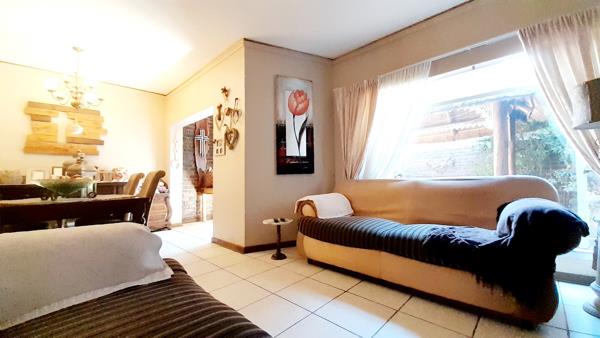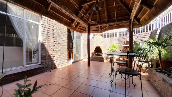This delightful and attractive unit is offered in pristine condition with accommodation arranged over two floors, offering large living space that spills out onto a private rear garden with a lapa and a built-in braai, a modern kitchen, and a guest WC downstairs, whilst upstairs offers a bathroom with a separate shower and two large bedrooms. The master bedroom has access to a pleasant North-facing balcony.