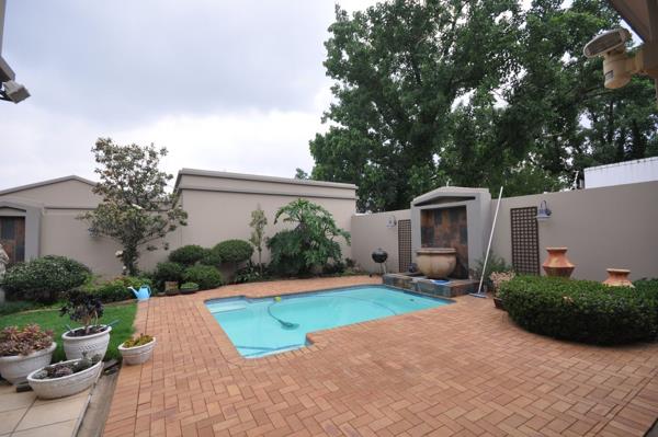 Passing through the French doors from the lounge onto the patio with built in braai, overlooking the sparkling pool and well maintained garden. Ideal for the entertainer.