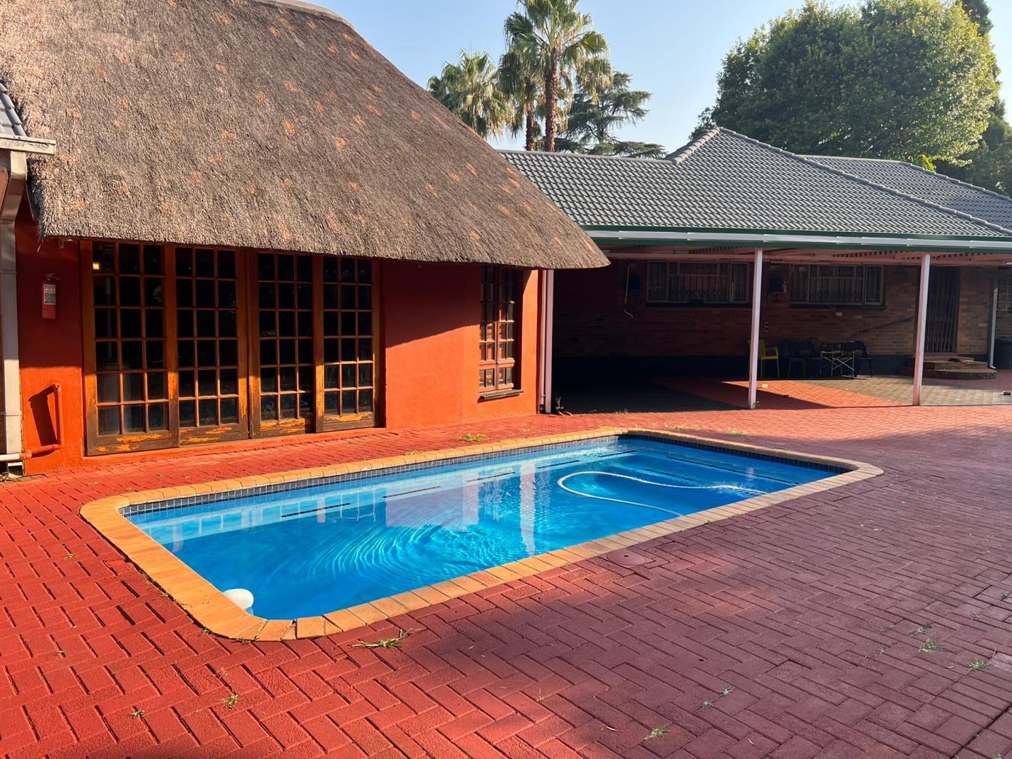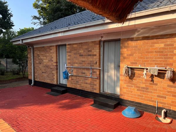 Solid wood kitchen cupboards that is spacious, with floor tiles. Sun deck next to the entertainment area and pool, entertainment room offers a bar, bathroom with shower and toilet. Ideal for hosting. The thatch roof entertainment space, the wooden doors and windows that adds beauty to the property. An outside room, storage and laundry situated at the back of the 3 garages.