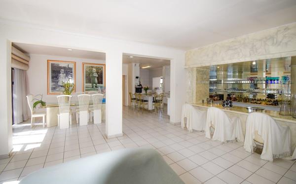 Living and entertaining areas are open-plan bathed in natural light. The seamless flow extends to an elegant-fitted bar and outside to the pool, lapa and jacuzzi.