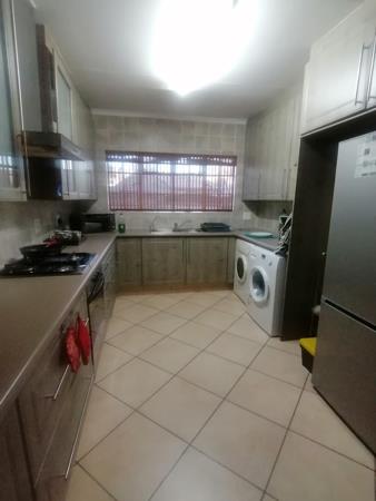 Outside, fence is a palisade with automated gate leading to the driveway beautifully paved with bricks winding to the double garage and double carport, one garage door is automated, and the other is manual. The garden is well manicured with flowers that soothes one''s soul in summertime. It has five eye rodding drain system for storm water.