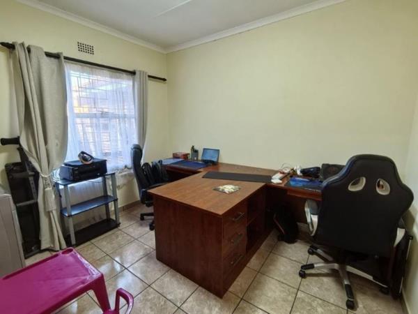 Three-bedroom townhouse in Three Rivers Proper. Low maintenance townhouse with face-brick offering a lounge, dining room and neatly fitted wooden kitchen with undercounter oven and hob.