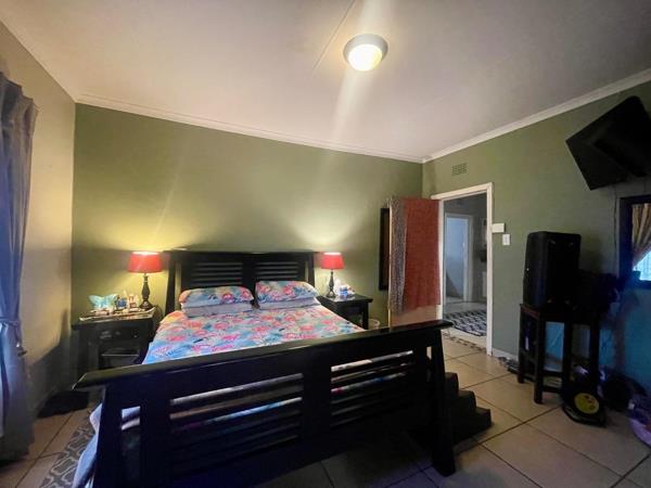 There are well-appointed bathrooms with stunning finishes, including a main bedroom with a luxurious en-suite complete with both a bath and shower. Additional features include a double garage, an outside toilet, and excellent security with an alarm system, electric gate, and a prepaid electricity meter.