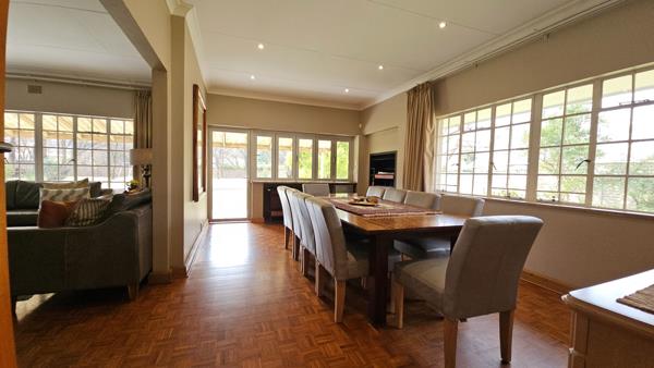 Outside offers two automated garages, staff accommodation and a workshop, all situated on a large stand with borehole and a pool.