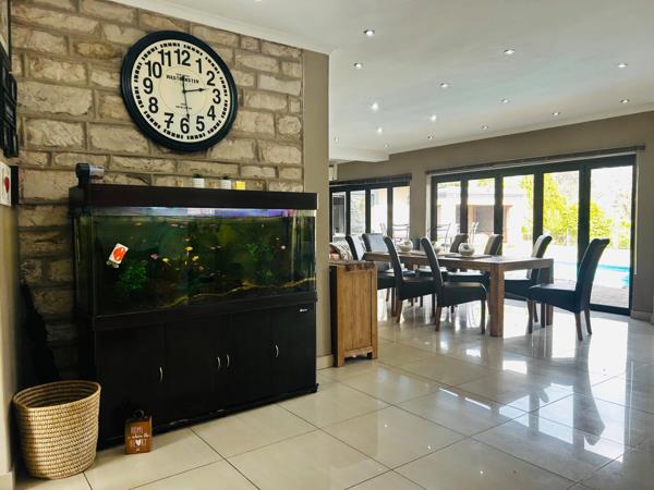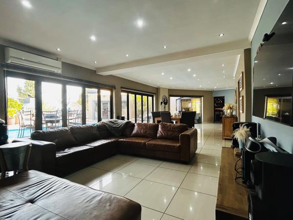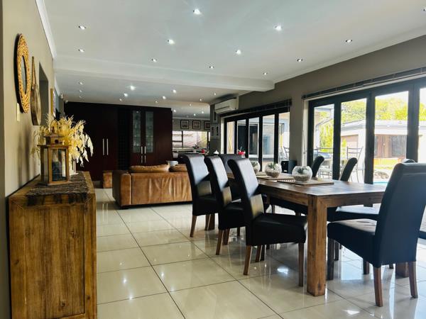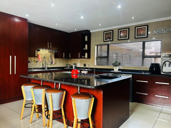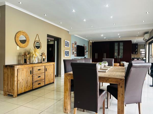 Immaculately designed for effortless living, this home promises all the necessities of comfort including a dedicated laundry and scullery room. The large entertainment area comes complete with a fitted bar and a built-in-braai, ideal for lavish gatherings or intimate family moments.