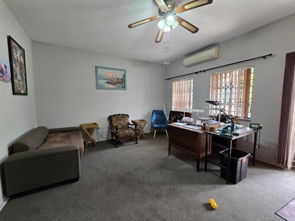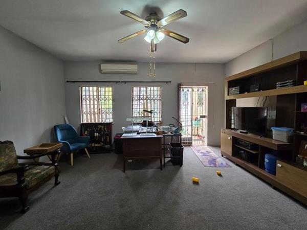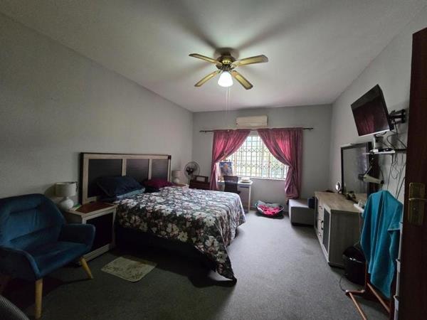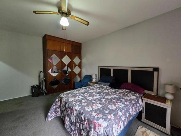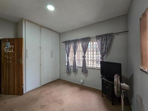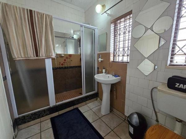 Both bedrooms are well-sized, filled with natural light, and fitted with built-in cupboards, as well as air conditioning and ceiling fans. The fully tiled bathroom includes a shower, pedestal basin, and toilet, with burglar bars fitted for added security.