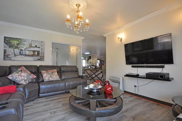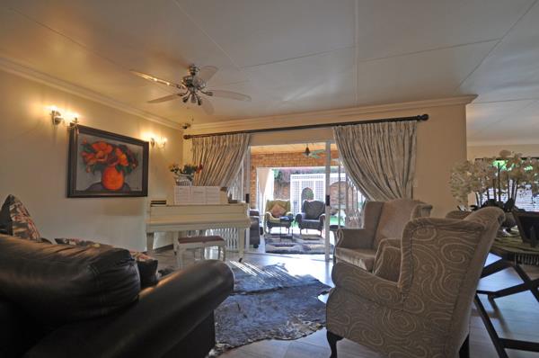 The lounge leads out onto a covered and enclosed recreation room with a built-in braai.