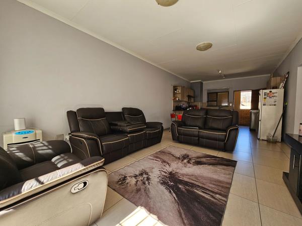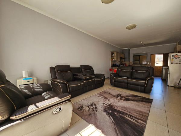 Two-bedroom townhouse in Three Rivers Proper. Ready to move in and stay, neat townhouse offering an open plan family room and neatly fitted melamine kitchen with granite tops.