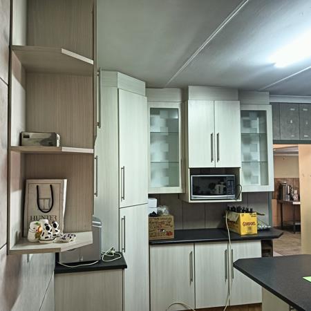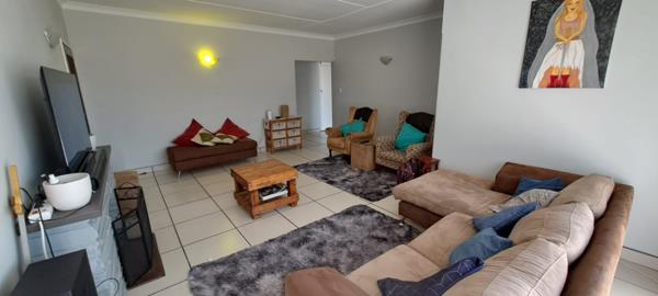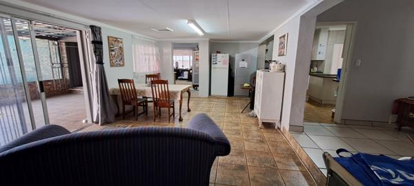 Kitchen is spacious and well maintained with beautifully fitted wooden built-in cupboards, electric stove with extractor fan and center island for those intimate meals together. Pantry Laundry area. A lovely entertainment area with built-in braai, lapa with kitchenette and a sparkling blue pool. Double garage adjoining the house with front car port for two vehicles an additional 3 bay garage with and carport and caravan bay.