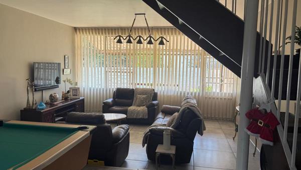This spacious townhouse for sale in Three Rivers is located in a well-maintained and secure complex featuring an alarm system, electric fencing, and a private garden. Downstairs, you are welcomed into a generous open-plan lounge, dining area, and a newly renovated kitchen fitted with a gas stove. A separate laundry area offers added convenience and can alternatively be used as a fifth bedroom, complemented by a guest toilet. The TVfamily room opens onto an enclosed patio that can easily be converted into an entertainment area overlooking the private garden. Upstairs, the home offers four well-lit bedrooms fitted with blinds, two bathrooms, and an additional separate toilet. The main bedroom is spacious and includes a walk-in closetdressing room and an en-suite bathroom. Completing this impressive property is an enclosed double carport and two garages, providing ample and secure parking.