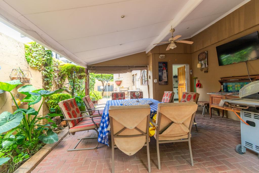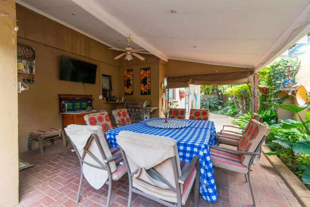 The interior flow is masterfully executed, with an open-plan dining area transitioning into a climate-controlled lounge. For the entertainer, the home reveals its true charm: a bespoke built-in bar opens onto a covered patio and traditional lapa, creating an enviable setting for year-round hosting. All-Weather Entertainment: The braai area is equipped with high-quality roll-up canvas doors, allowing for seamless indoor-outdoor living in any season. With a double garage and a low-maintenance footprint, this property offers a sophisticated lock-up-and-go lifestyle without compromising on luxury or space.