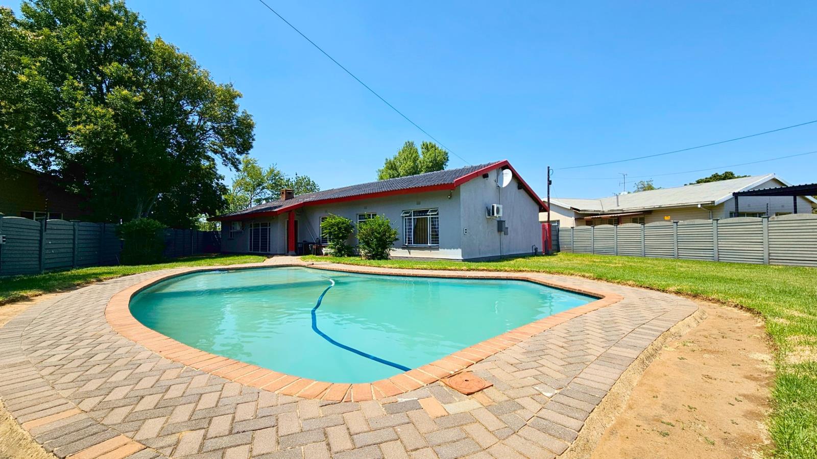 Occupying a generous stand with a strong borehole and irrigation, the home also features a pool that combines a kiddies pool at one end as well as a tandem garage and a large carport.