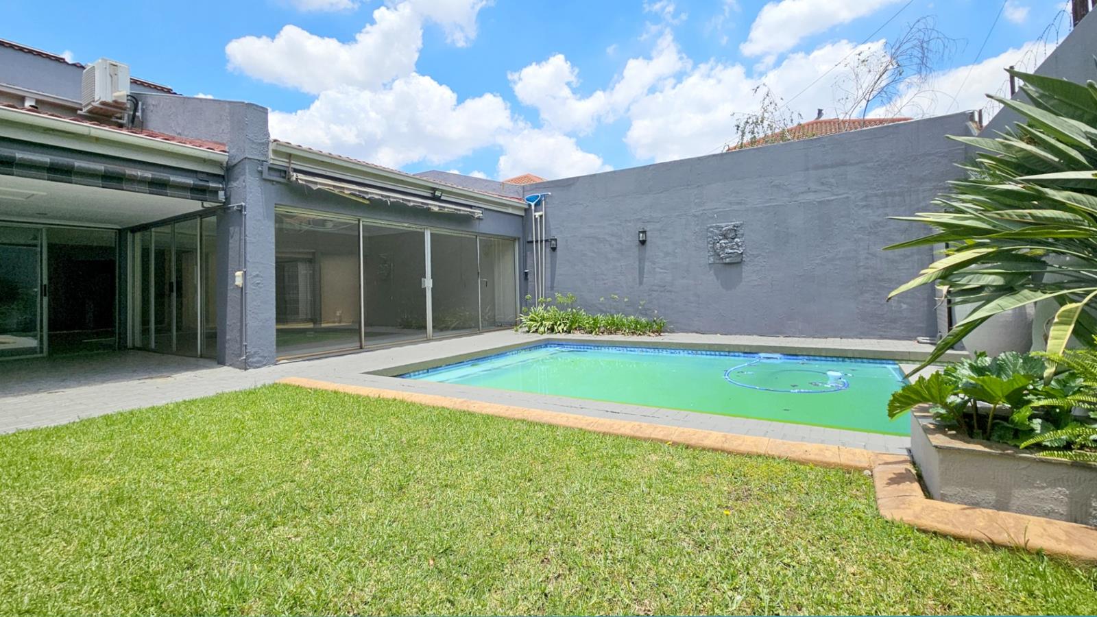 Features of this delightful home include an atrium, a contemporary upgraded kitchen, expansive open-plan living spaces flowing seamlessly onto a patio with a built-in braai, four well-proportioned bedrooms, three bathrooms, including a luxurious main en-suite, a private back garden, a swimming pool, and a double automated garage.