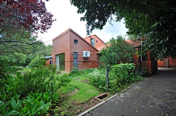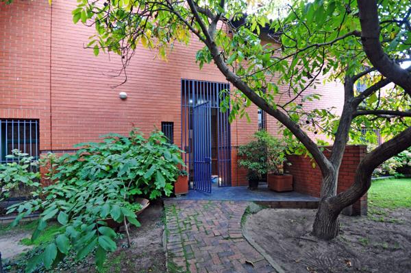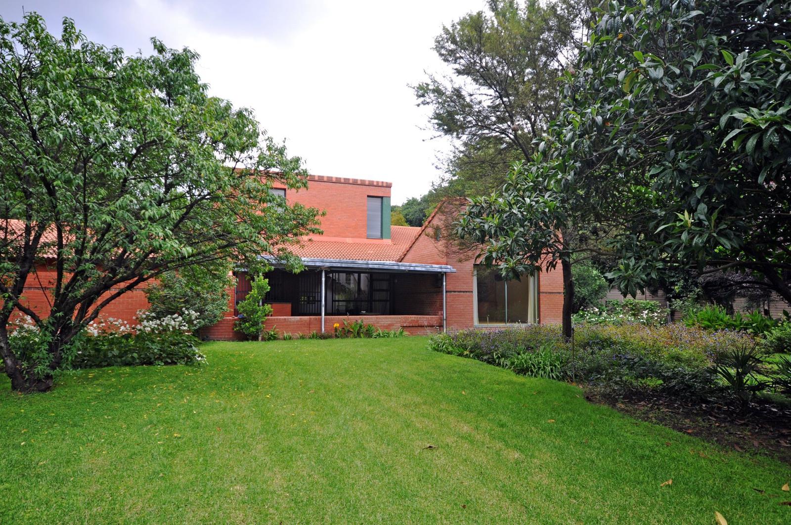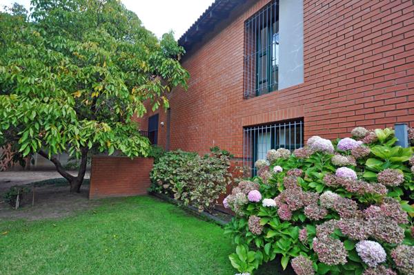The covered patio with large built-in braai area is perfect for entertaining while overlooking the lush garden.