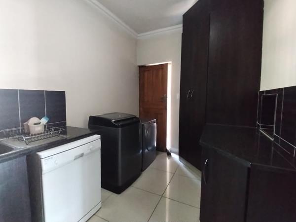 Discover luxurious living in this one-of-a-kind double-story mansion the perfect blend of modern design and practical family comfort. Step into a spacious open-plan living area featuring a built-in bar, dining space, and a modern kitchen complete with every convenience and a separate laundry/scullery.