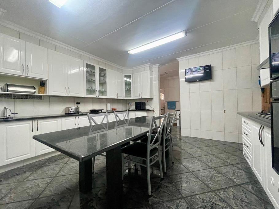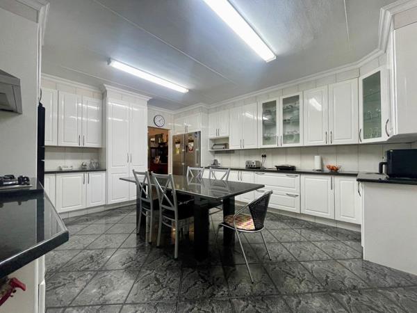 This spacious and well-maintained family home, set on a 1,984 m² stand, offers comfort, security, and modern features. The main house, with a size of 413 m², includes four bedrooms, all fitted with air conditioning, and three automated garage doors with ample storage space and built-in cupboards, every man''s dream for storage and organization. An electronic entrance gate provides added security, while the beautiful swimming pool creates the perfect space for relaxation. The property boasts a large front and back yard, with designated enclosed areas on both sides of the houses for pets, keep your pets separate.