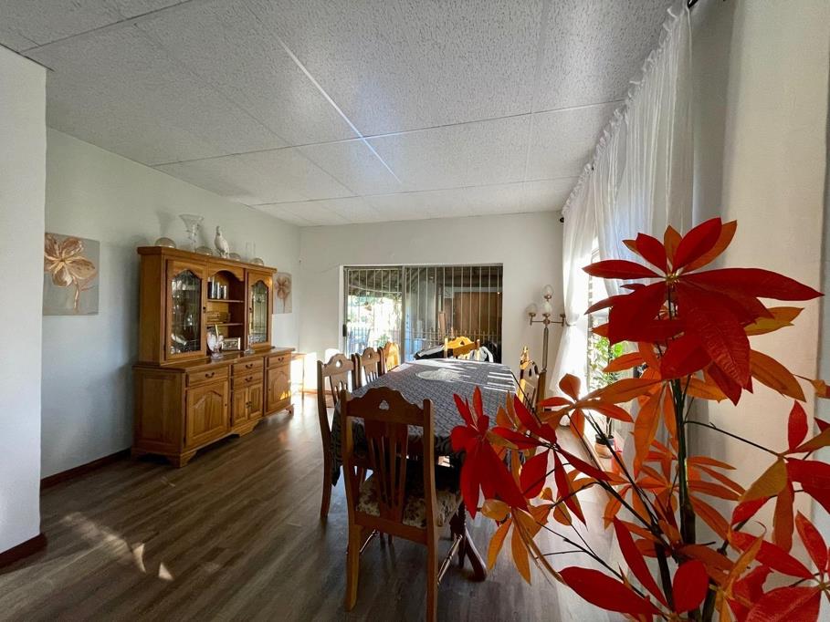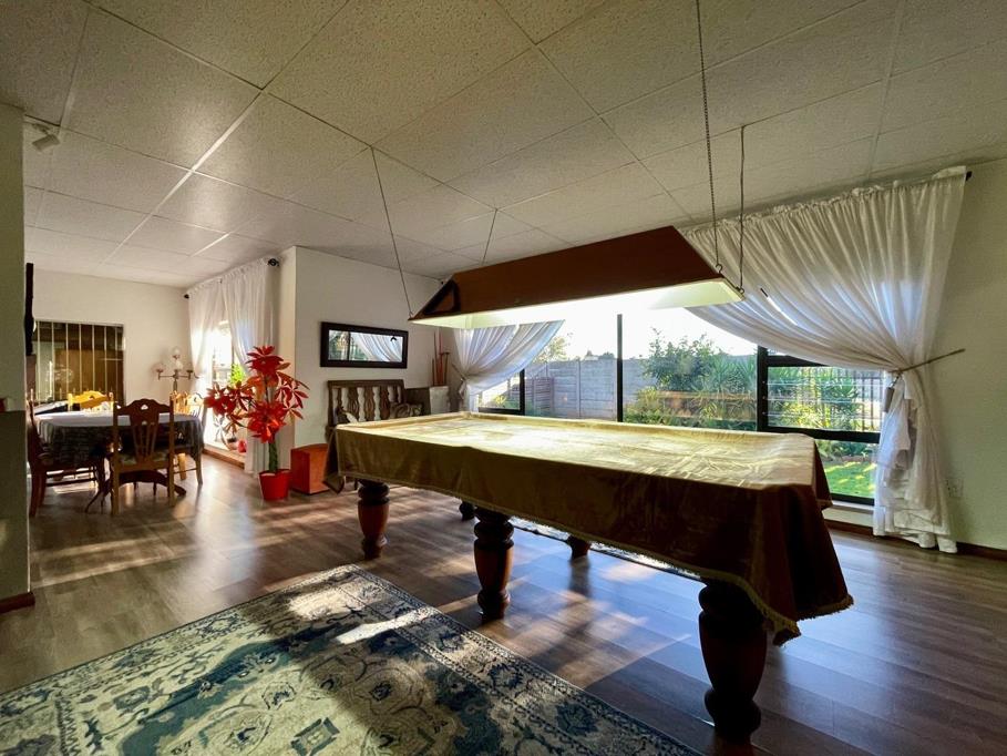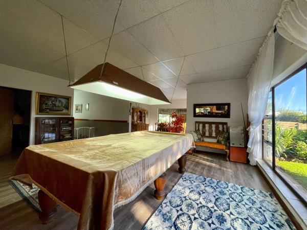 This immaculate property offers 4 spacious bedrooms, all with laminated floors and modern remote-controlled fans. The study opens onto a large Harvey tiled thatched lapa with built-in braai and plugsperfect for entertaining.
