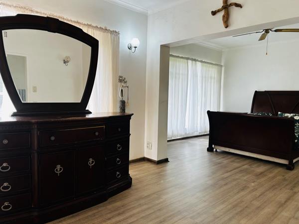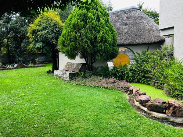 A thatched lapa with built in braai area completes this property which overlooks a sparkling swimming pool-perfect for the warm Summer days. A well established garden ensures that you can enjoy outside living, and enough roaming space for your pets.