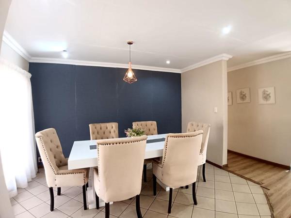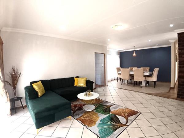 This well-positioned family home is situated right across from a sought-after school, making it ideal for families. The home offers 3 generously sized bedrooms with built-in cupboards, including a main en-suite and an additional family bathroom. A spacious study compliments the home and can also be used as a 4th bedroom. The home boast an open-plan living and dining area, a cozy lounge, and a functional kitchen with a separate scullery and laundry for added convenience.