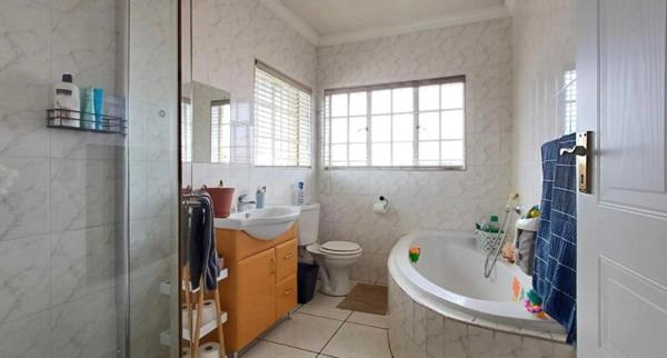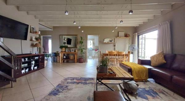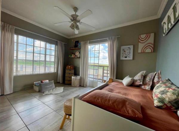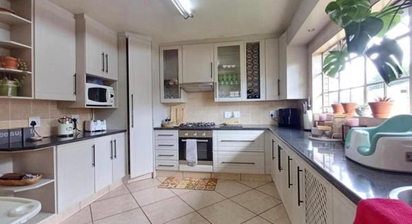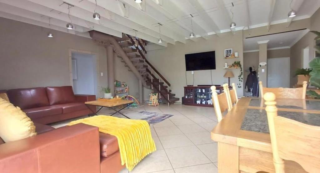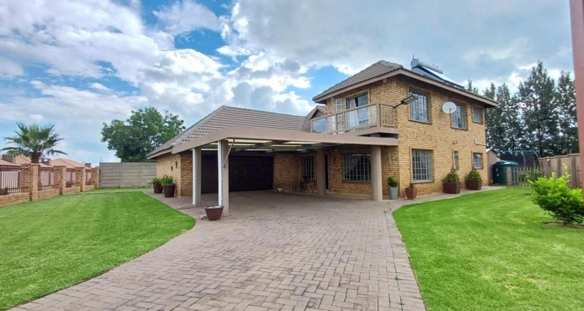 This elegant family home, situated in the sought-after Eligwa Estate, offers four spacious bedrooms, including a main suite with a walk-in closet. The home features two modern bathrooms plus a guest toilet, and a welcoming entrance that opens into a bright, open-plan lounge and dining area. The stylish kitchen is fitted with granite countertops, an eye-level oven, extractor fan, and gas stove. With tiled floors throughout and carpeting only in the upstairs pajama loungeloft, this property blends comfort with modern living. Outdoors, an entertainers patio with a built-in braai overlooks a sparkling blue pool, perfect for hosting family and friends. Added features include a solar geyser, double garage, and two carports making this home a complete lifestyle package.