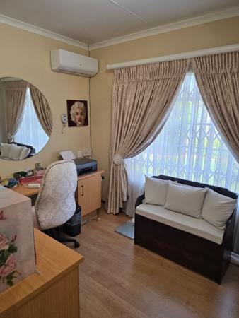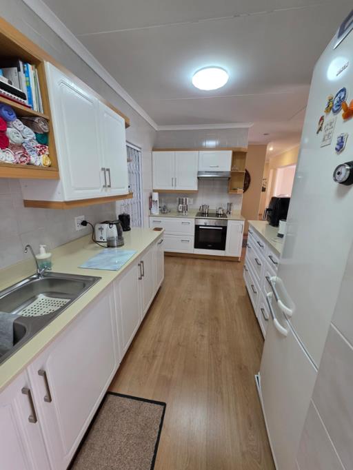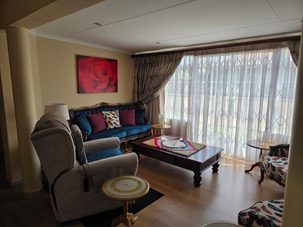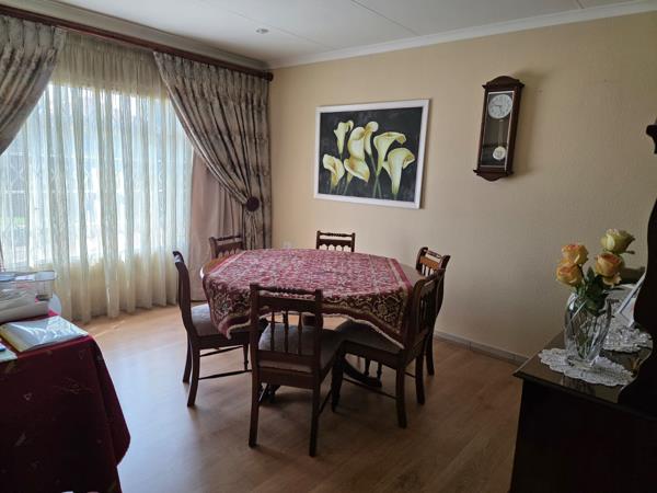 Spacious well maintained three bedroom house which offers double bathroom one Bath- one Shower with toilet and basin each. Inverter which offer very low electricity usageexpenses. Spacious living room, dining room and modern kitchen with granite tops. Double garage with basin for laundry space for washing machine, basin and build-in cupboards. Garden service to maintain lawn. Lover roof at patio to enable sunlight during winter season.