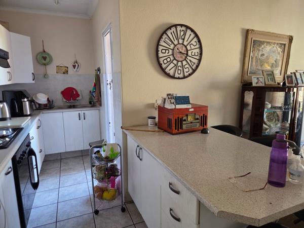 Spacious well maintained two bedroom house which offers double bathroom one Bath, one Shower with toilet and basin each. Spacious living room, dining room and modern kitchen with granite tops. Double garage with basin for laundry space for washing machine, basin and build-in cupboards. Garden service to maintain lawn. Lover roof at patio to enable sunlight during winter season