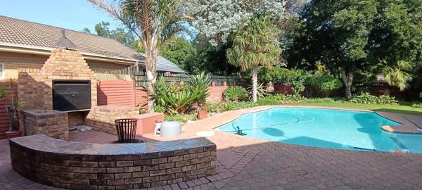 The home features an open-plan living and dining area, complemented by a stylish kitchen with granite countertops, breakfast nook, and scullery. An inviting entertainment lounge with built-in braai flows seamlessly to the outdoor entertainment area, where youll find a fire pit, additional built-in braai, and swimming poolperfect for hosting family and friends.