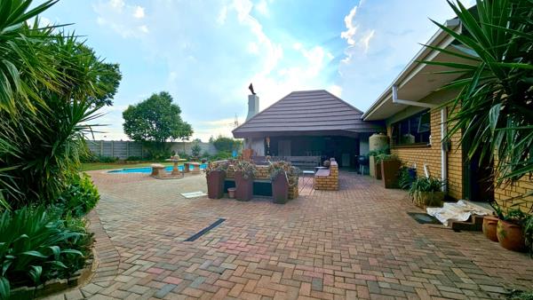 Outdoor living is elevated with extensive paved areas, a pleasant boma braai, and built-in benches that seat 12-16 people, with storage for firewood beneath. New heavy-duty plumbing ensures seamless functionality throughout the property.