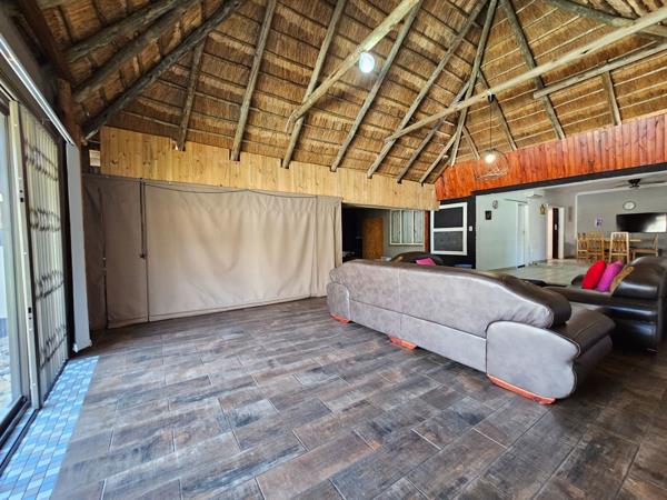 Spacious lapa and entertainment room with built in braai, leading to the pool.