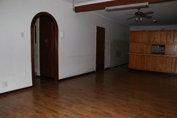 A lovely open-plan dining and living room, perfect for family gatherings with small garden and cosy lapa for entertaining.