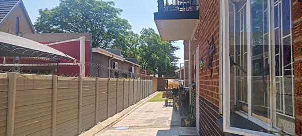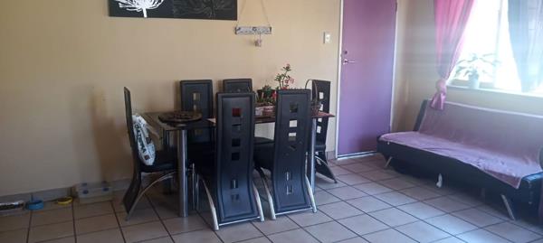 Two-bedroom apartment in Three Rivers. Ground floor corner unit with lounge dining in one room, melamine kitchen with freestanding stove.