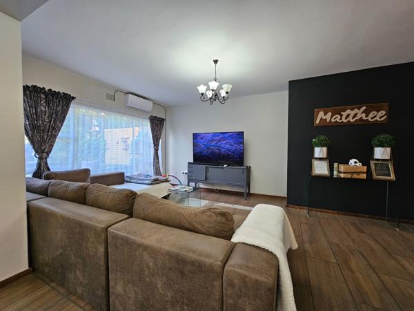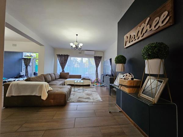 Duplex townhouse in Three Rivers Proper. Prime townhouse with spacious open plan lounge and dining room leading to a patio with small manageable garden.