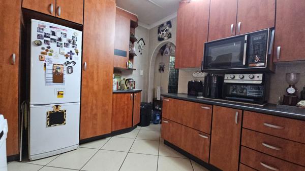 Two-bedroom townhouse in Three Rivers. This townhouse offers an open plan lounge and dining room and a neatly fitted melamine kitchen with gas stove.