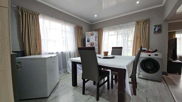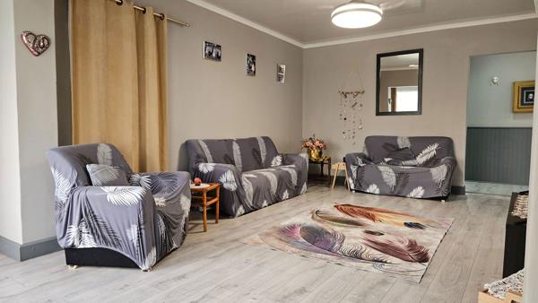 Three-bedroom home with flatlet. Neat and spacious family home with lounge, dining room and fitted melamine kitchen with separate scullery area.