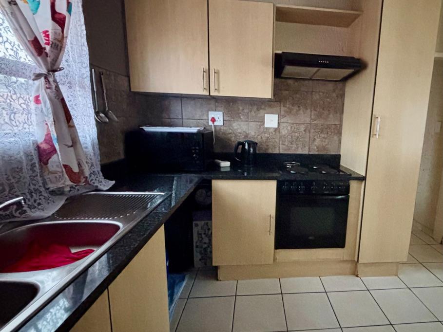 The kitchen also has ample cupboard space as well as connections for a washing machine & dishwasher. Built-in oven with extractor fan and electric stove tops.