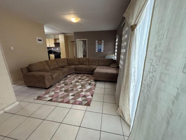Open plan area for dining and tv room/living room, with nice sunlight.