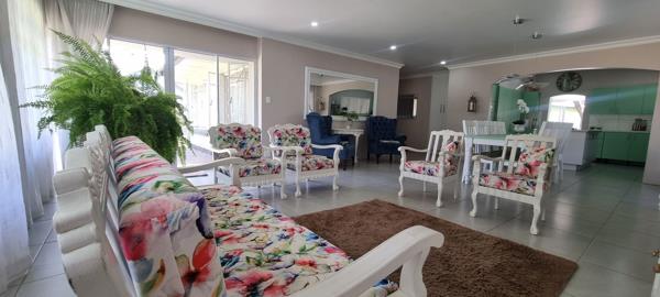 Modern family home with two-bedroom flatlet . Warm welcome with spacious open plan dining room, lounge, and modern kitchen with ample cupboard space, center island and separate laundry area.