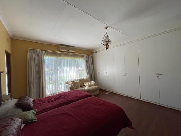 The sunny bedrooms are generously sized and offer stunning views over the sparkling swimming pool, creating a serene and inviting atmosphere. The kitchen is practical and functional, complemented by a scullery and separate laundry area for added convenience.