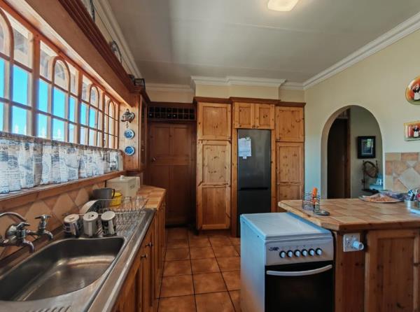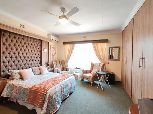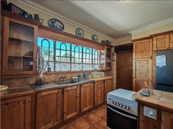The well-sized kitchen is practical and inviting, with ample space to cook, gather, and create memories, while outside the home continues to impress. Neat, green lawns, a tranquil koi pond, and charming vegetable garden patches create a peaceful outdoor haven. The thatched lapa is ideal for weekend braais, family celebrations, or simply unwinding while enjoying the garden setting.