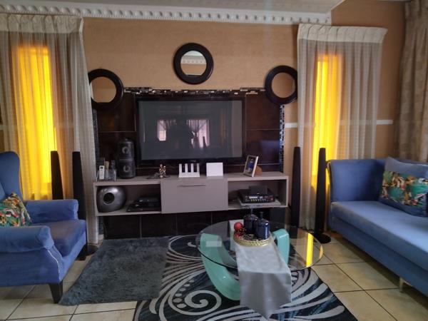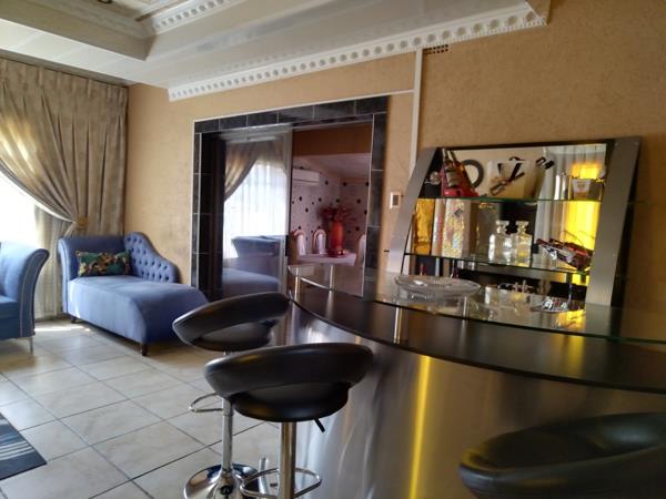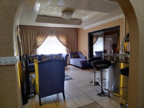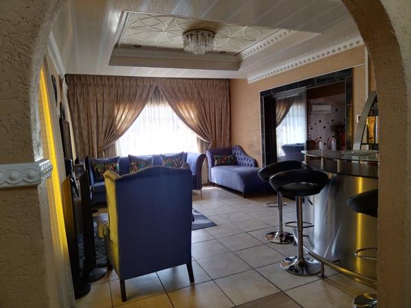 Enjoy year-round sunlight in the cozy sunroom, perfect for relaxation. The elegant kitchen is fitted with built-in cupboards, offering plenty of storage space. The property features two inviting loungesone with a chic bar for entertaining, and the other seamlessly connected to the open-plan dining room, ideal for family gatherings.