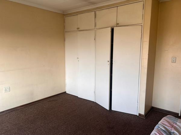 2 bedroom apartment in Vereeniging CBD, solid built apartments , very close to the municipality, banks and many more places of employment including Dept of Labour and Home affairs. Each unit has its own garage, , 2 bedrooms with 1 bathroom, bedroom floors are made of carpet. KItchen offers the sink for convenience, floor tiles and is well painted inside. The gate is controlled. Laundry line on the roof top. Well secured and well taken care off complex.