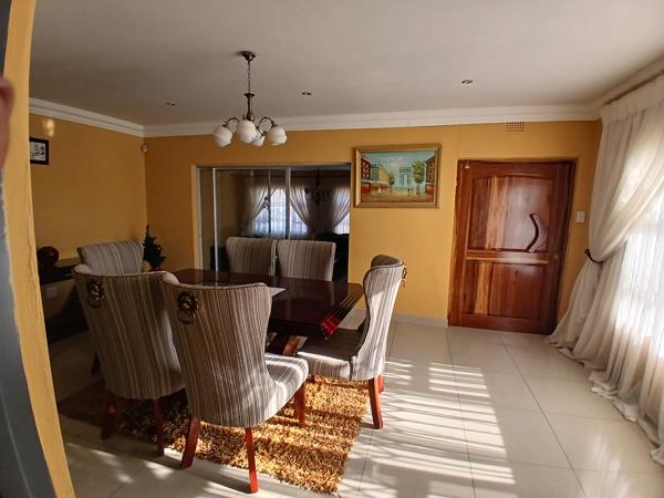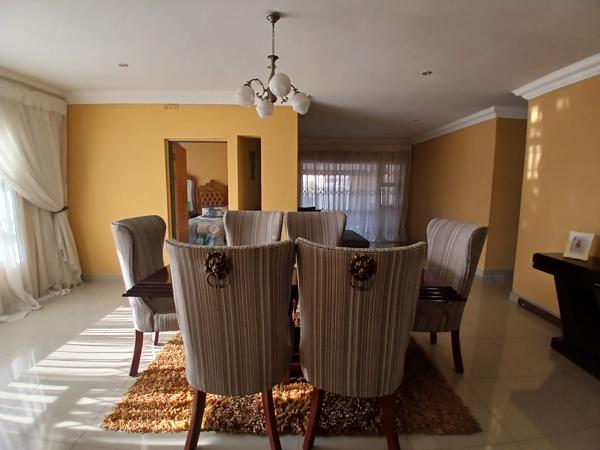 It offers 4 bedrooms and 2 bathrooms, main bedroom has an en-suite and a huge Bic. All the bedrooms are quiet spacious and offers Bic, beautiful floors and ceilings. Both bathrooms are newly done and are modern, very expensive finishings. 3 Living rooms, dining room and tv room are separated using the sliding door. The sliding door from the lounge leading towards the entertainment area made of awnings that offers a built in braai, sparkling pool during summer days. The yard is completely paved, including the drive way. 2 Rooms at the back comes as a bonus, 2 garages built separate from the main house. The kitchen offers beautiful Bic and scullery. Aluminium windows with lockable Trellidoor and a pivot door for beauty and security.